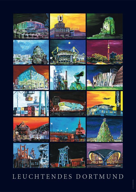 gemalt, speziell aus dem Ruhrgebiet und vor allem aus Dortmund. Diese sind dann auch in deinem großen Plakat/Collage als Plakat entstanden, welche ich exklusiv zum Verkauf anbiete - ohne Zwischenhandel. Mehr dazu am Ende dieser Seite. Möchten Sie ein Highlight Ihrer Stadt in dieser Art gemalt haben - für Ihr Büro oder Zuhause, dann sprechen Sie mich gerne an.